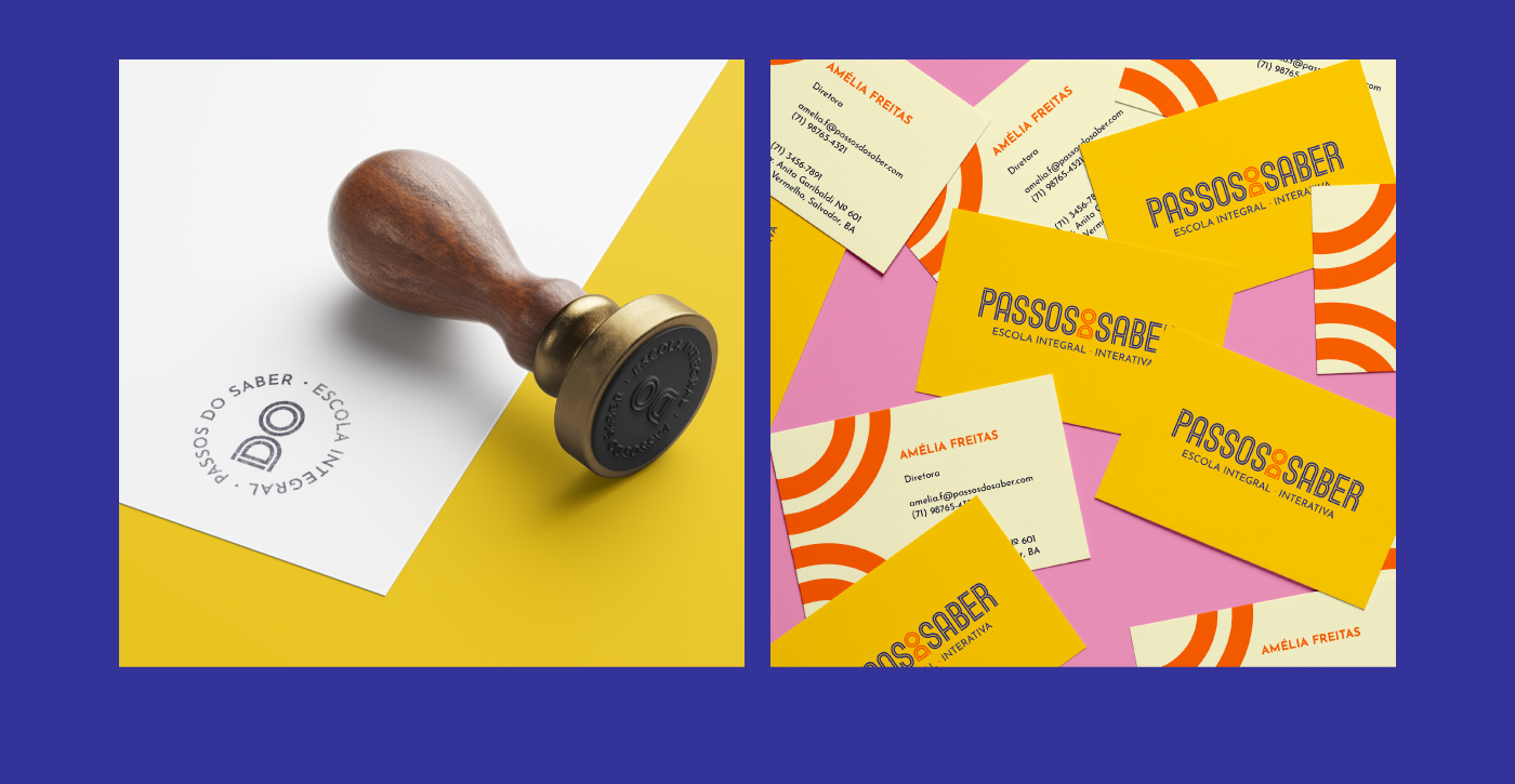 Este projeto foi feito para refletir a integração entre o mundo real e o digital. O logotipo foi tipografado com base na fonte Ostrich Sans Inline para as palavras "Passos" e "Saber", e a palavra "do" foi tipografada em Josefin Sans, sendo então rotacionada e manipulada para corresponder à aparência das letras da Ostrich Sans Inline e funcionar como um símbolo e elemento de apoio ao mesmo tempo. Também desenhei uma versão inspirada em pixels para expandir o conceito digital.